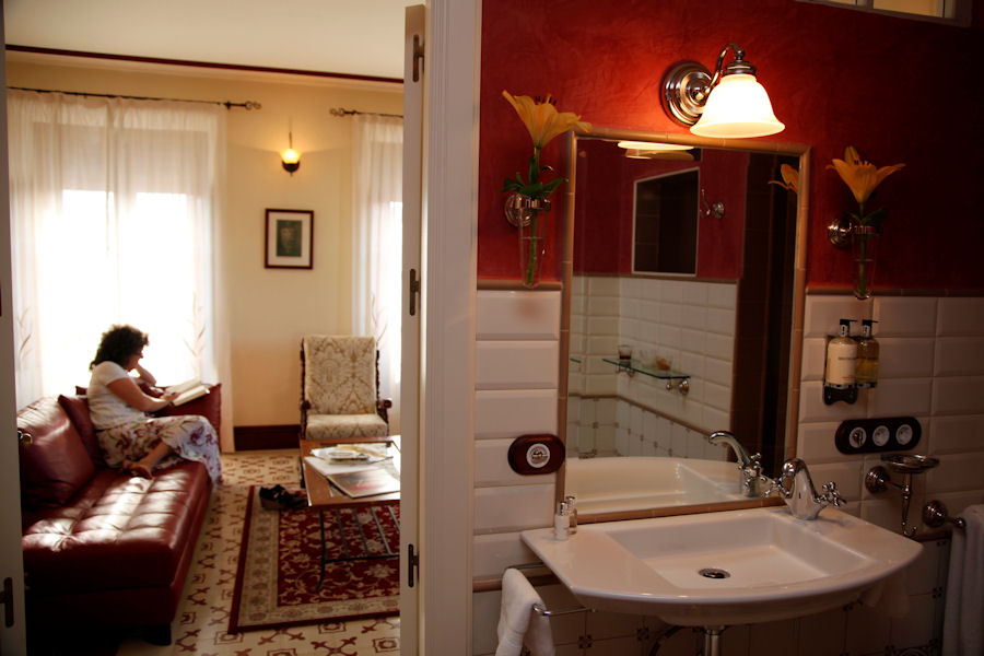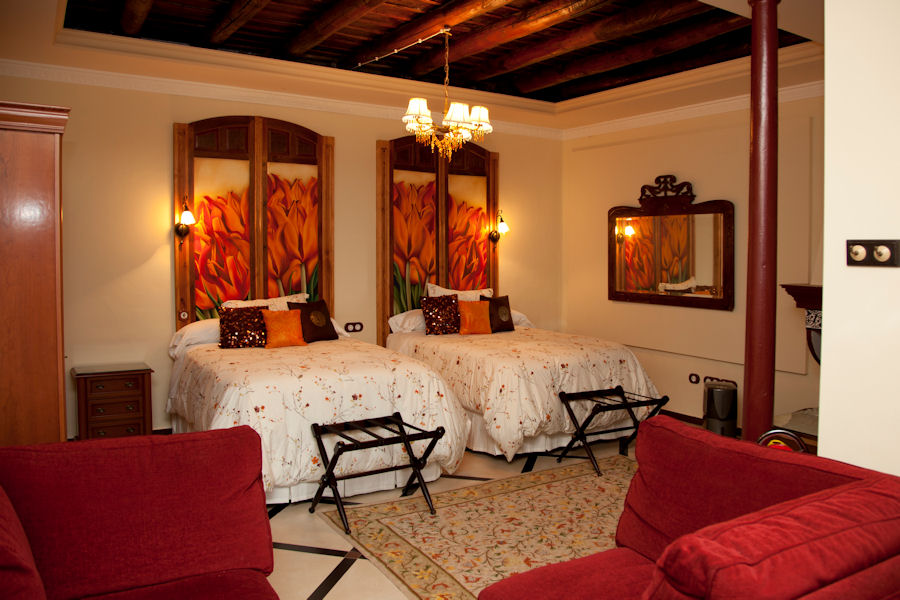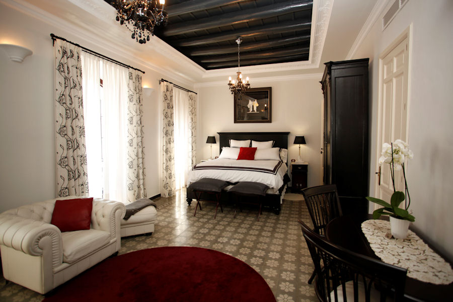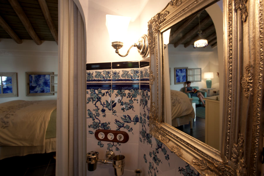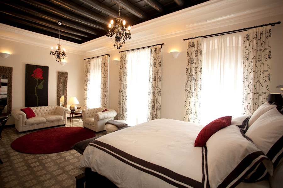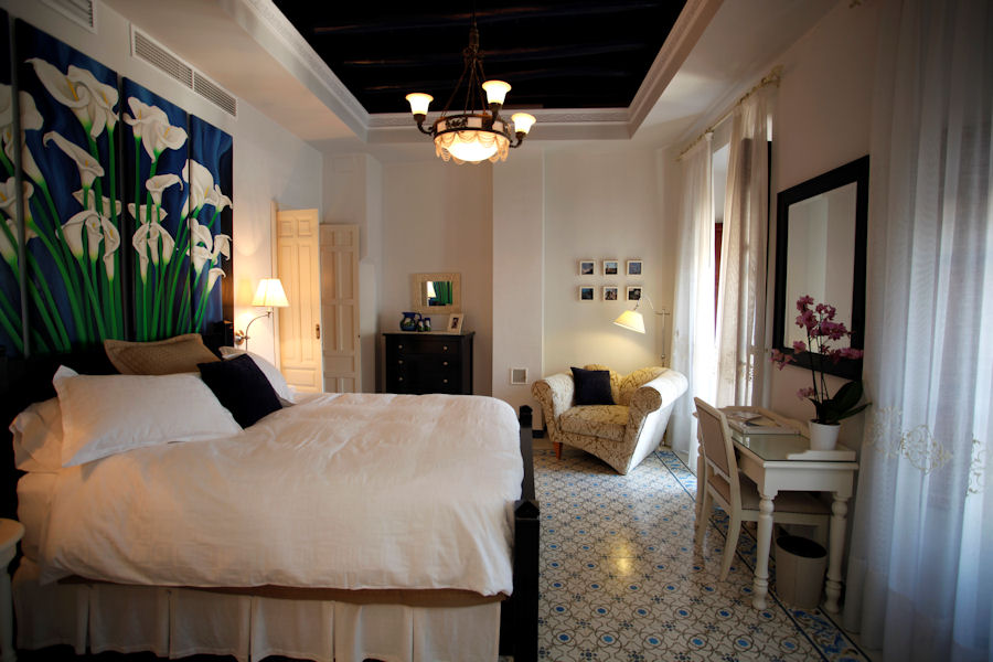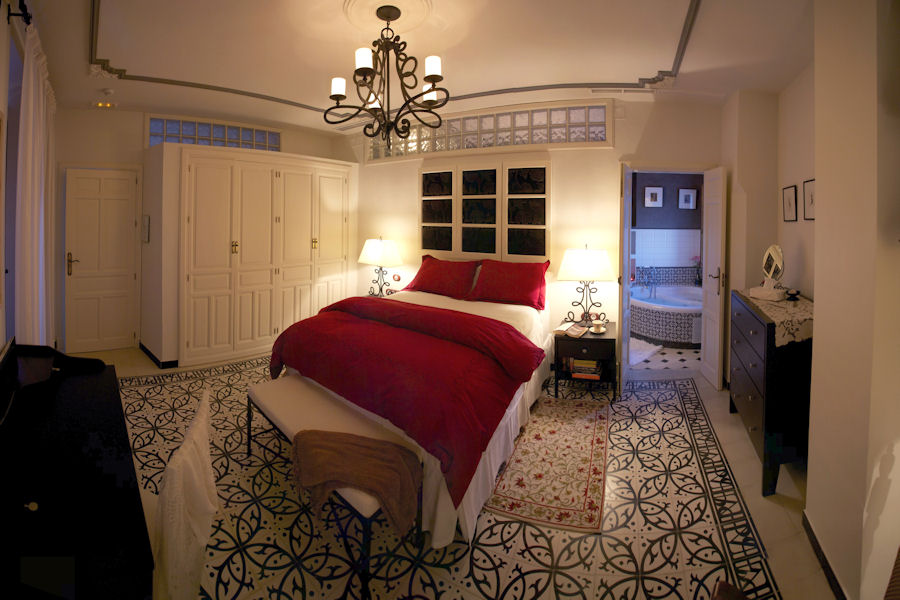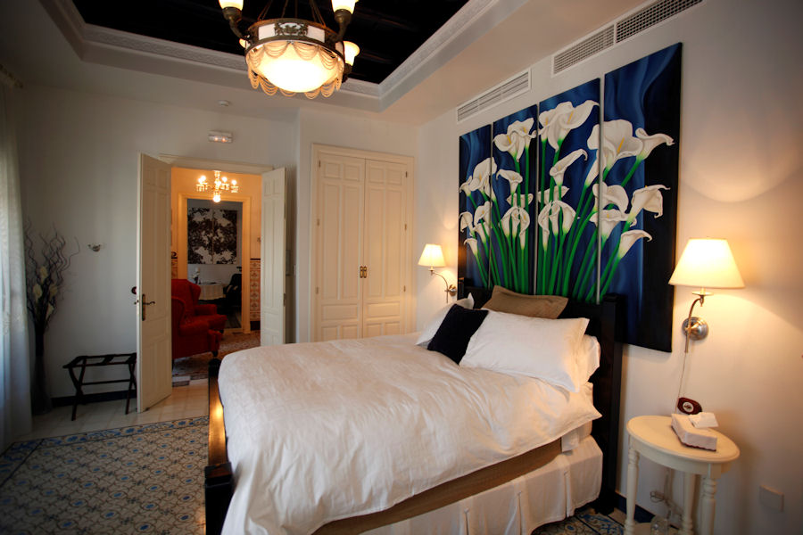 Imagine watching the sun disappear behind the hills in this beautifully designed suite. The mudejar inspired motif is elegantly woven through each of the elements of the room with the floor tiles, lamps and chandelier all echoing the same fluidity of line.
