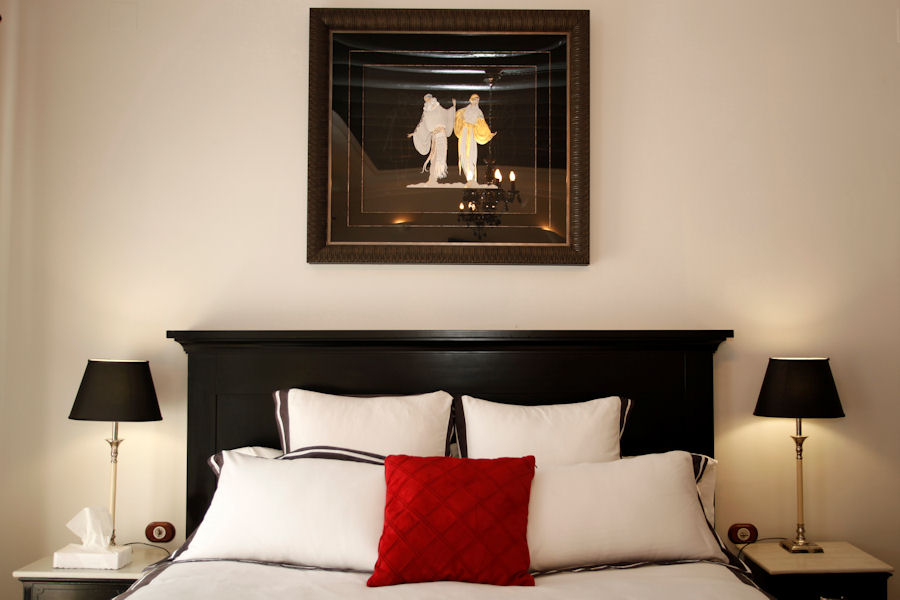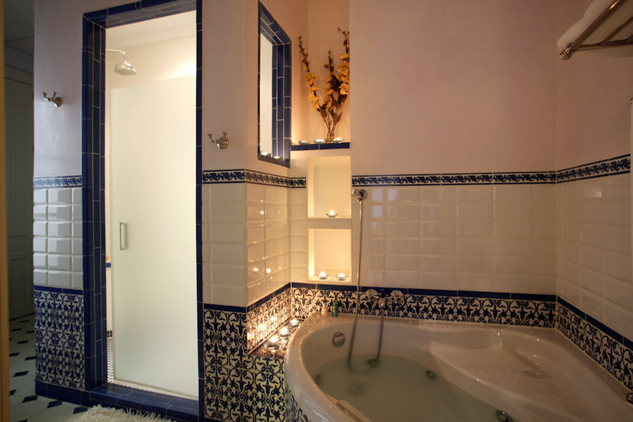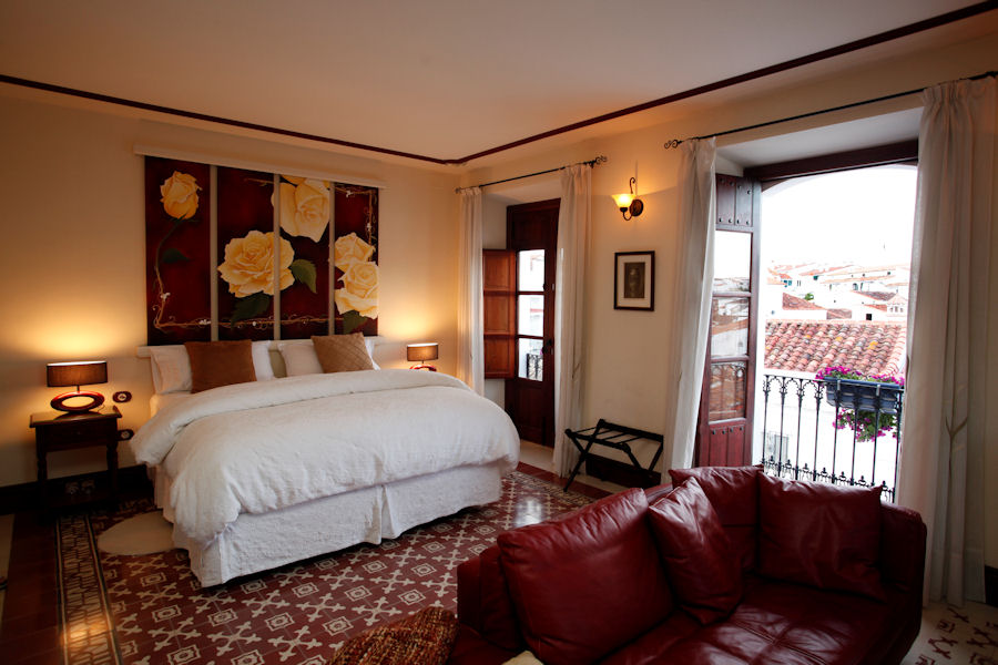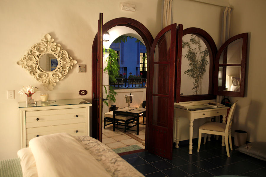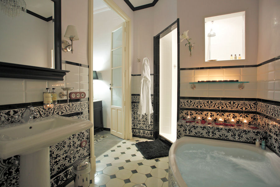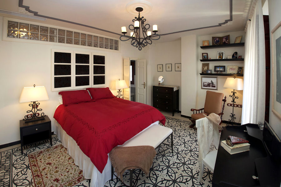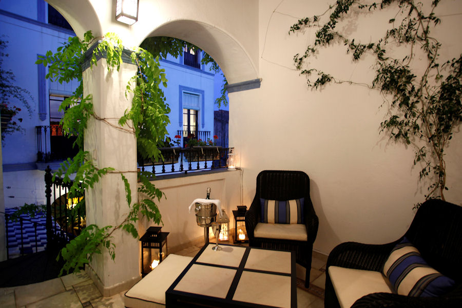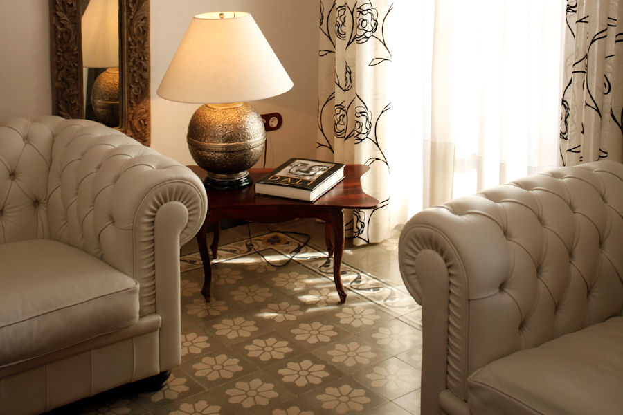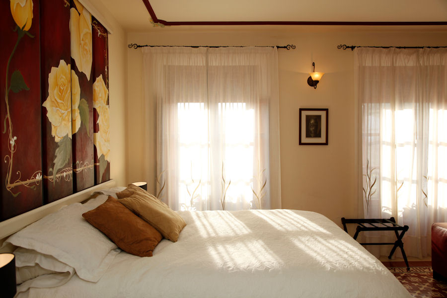 Imagine watching the sun disappear behind the hills in this beautifully designed suite. The mudejar inspired motif is elegantly woven through each of the elements of the room with the floor tiles, lamps and chandelier all echoing the same fluidity of line.