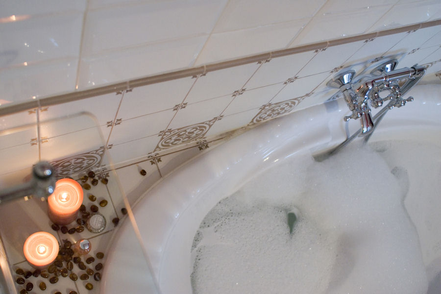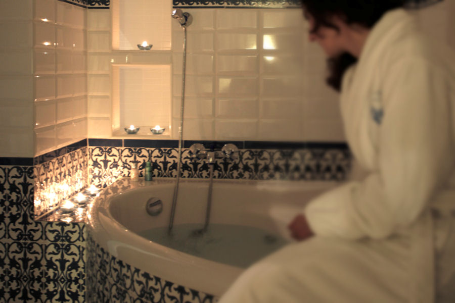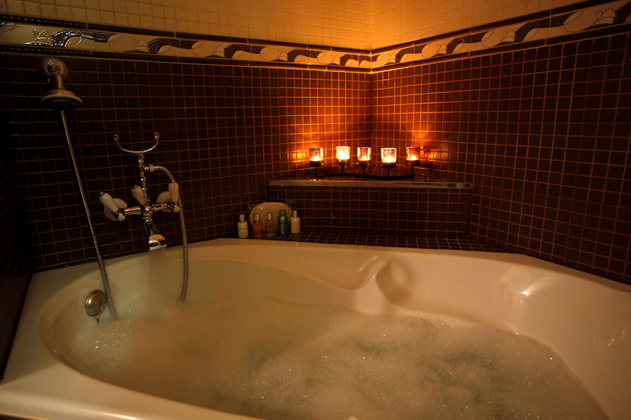 Balcony at night Jacuzzi with Candles Bathroom Sink & Mirror