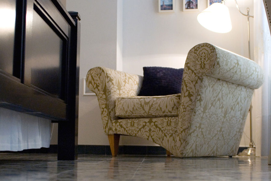 From Door to bed w- curtains From bathroom thru to breakfast Armchair